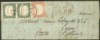 Antichi Stati Italiani - Sardegna - Letterina affrancata con coppia del 5 cent verde smeraldo grigiastro (13g) + 40 cent vermiglio rosa (16c)