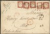 Antichi Stati Italiani - Sardegna - Frontespizio affrancato con cinque esemplari del 40 cent carminio (16Ca)