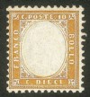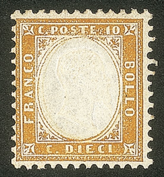 Regno - Vittorio Emanuele II - C.10 bistro giallastro, dentellato 11,5 x 12 (1)