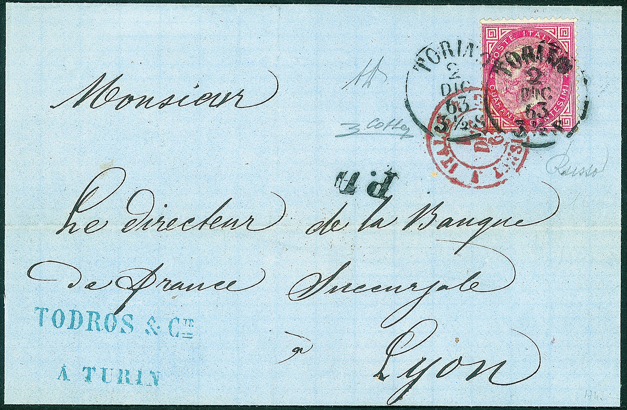 Da Torino a Lione del 2.12.63 - annulli nitidi - molto rara - ex coll. Provera - Diena + cert. Colla