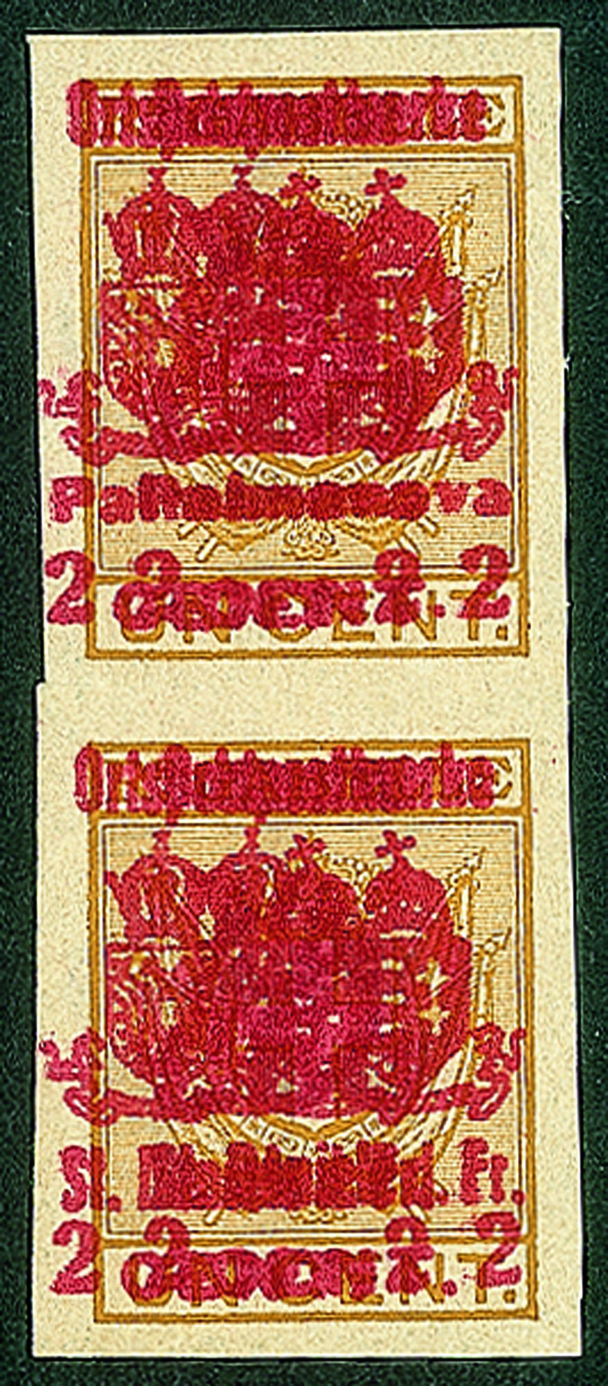 Occupazioni I guerra mondiale - Coppia verticale del 2 su 1 cent (38a + 46a)