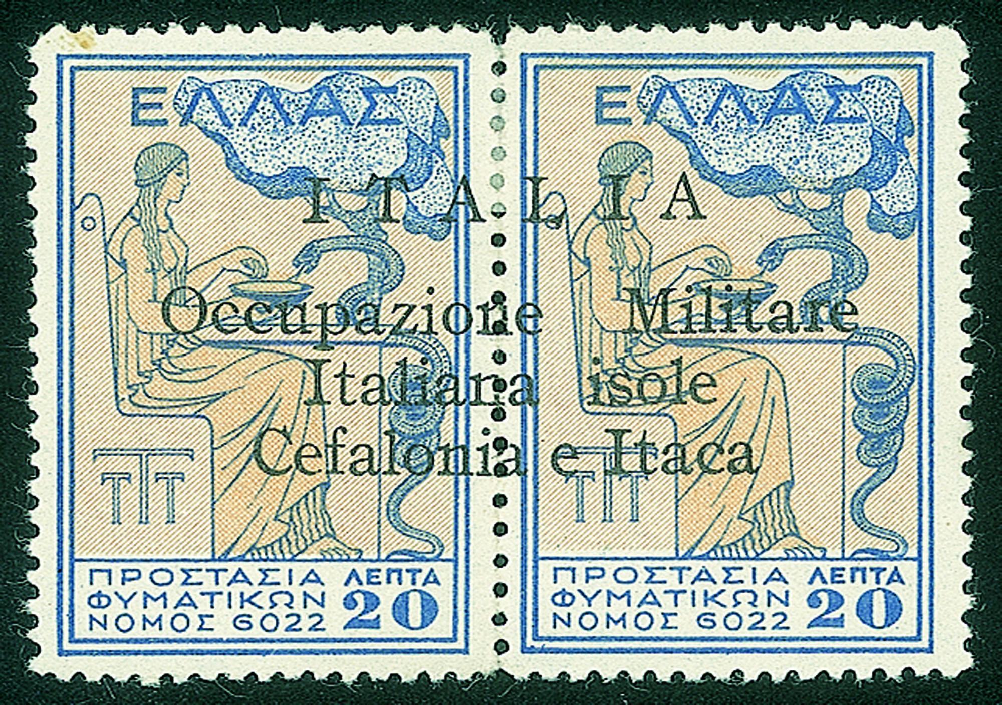 Occupazioni II guerra mondiale - 1941 Esemplari in coppia Beneficenza l.20+20 azzurro e giallo (33 cat.900)