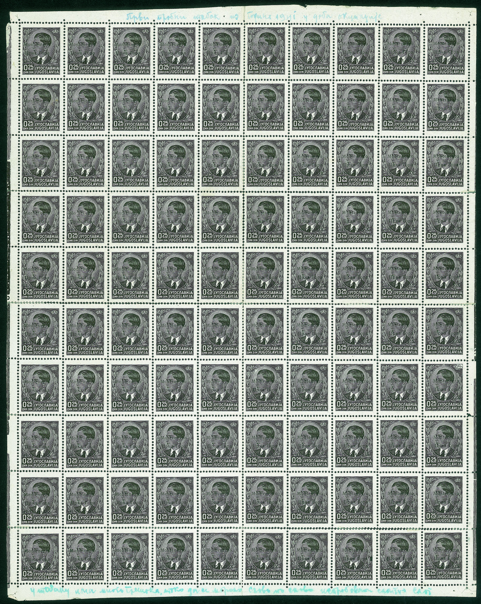 Occupazioni II guerra mondiale - 1941 - 25 para (1) - intero foglio di 100 con soprastampa in grigio (tiratura di prova)