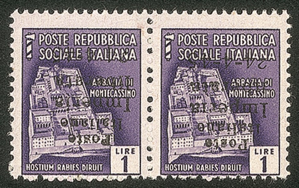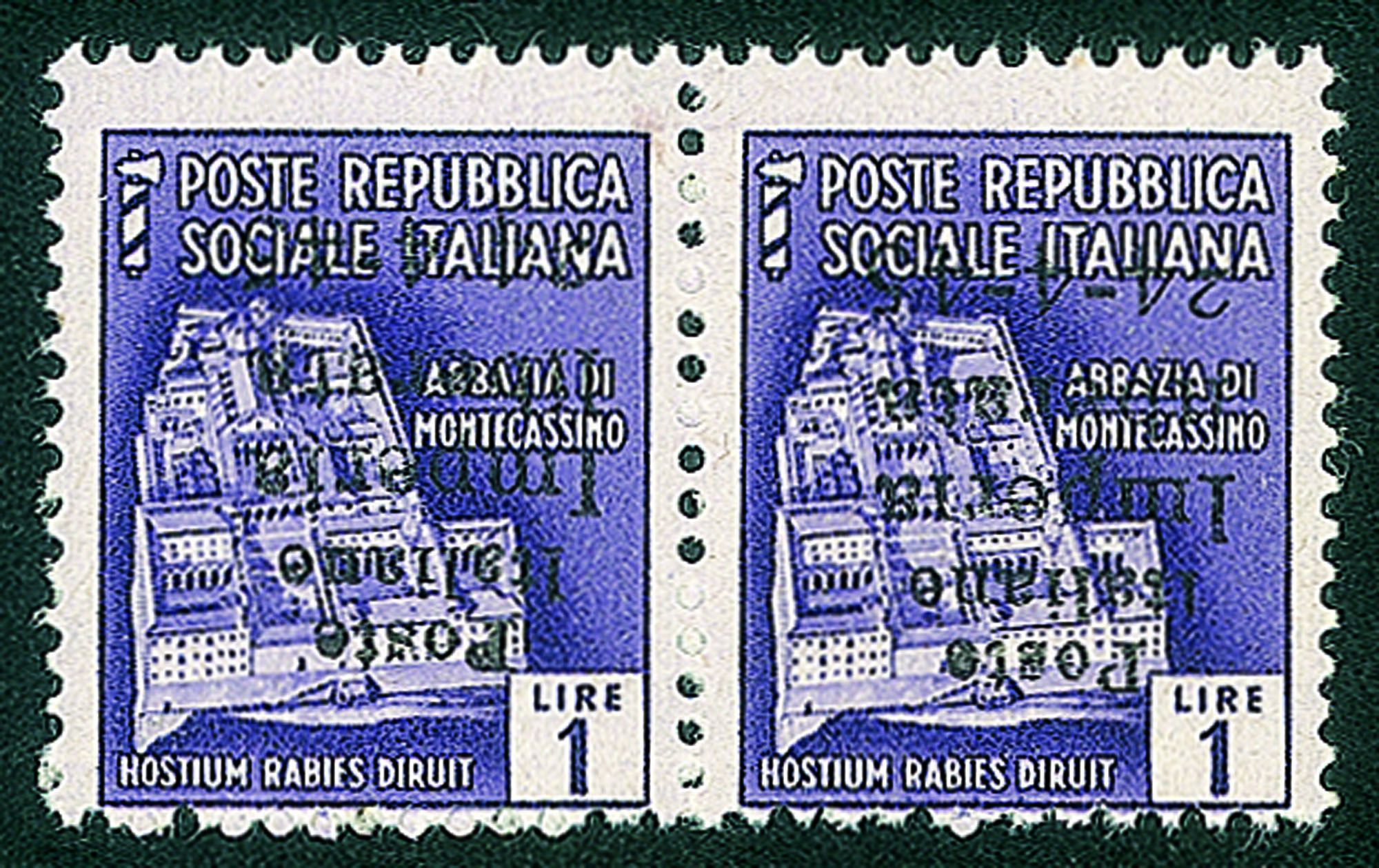 Emissioni CLN - 1945 - 1 lira (8a) - coppia con soprastampe capovolte