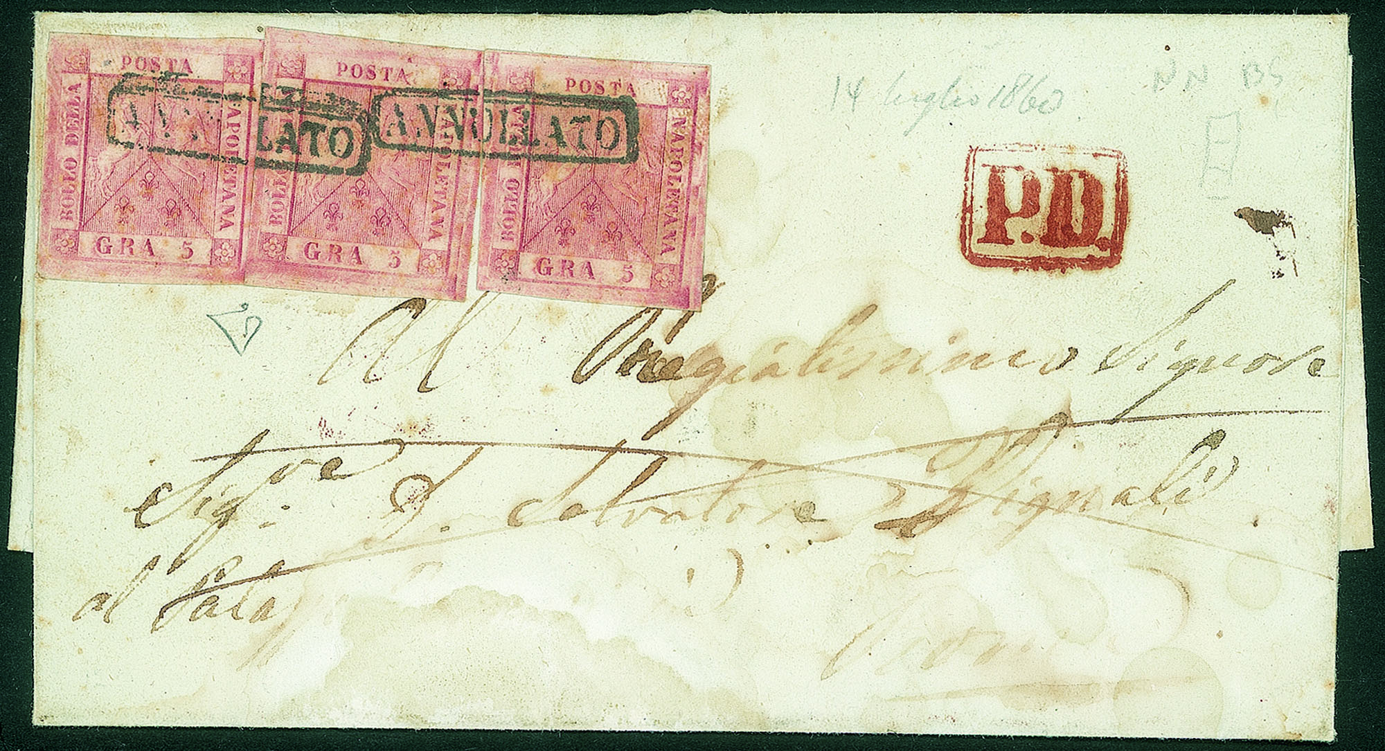Antichi Stati Italiani - Napoli - Busta affrancata con tre esemplari del 5 grana seconda tavola (9)