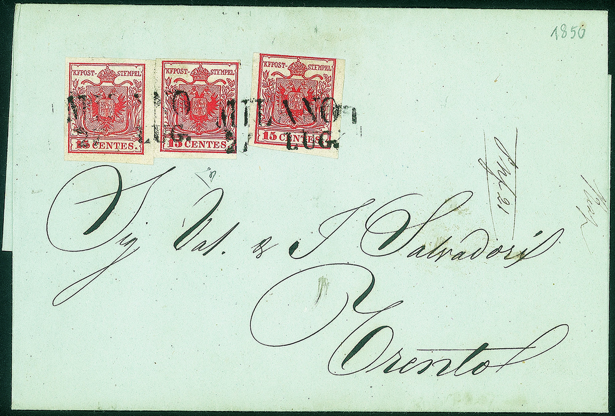 Antichi Stati Italiani - Lombardo Veneto - Lettera affrancata con tre 15 cent (3a)