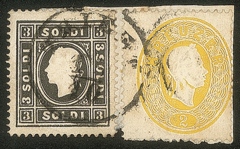 Seconda emissione + 2 kreuzer (A18) terza emissione annullato Triest 15/10 - molto raro - cert. A. Diena