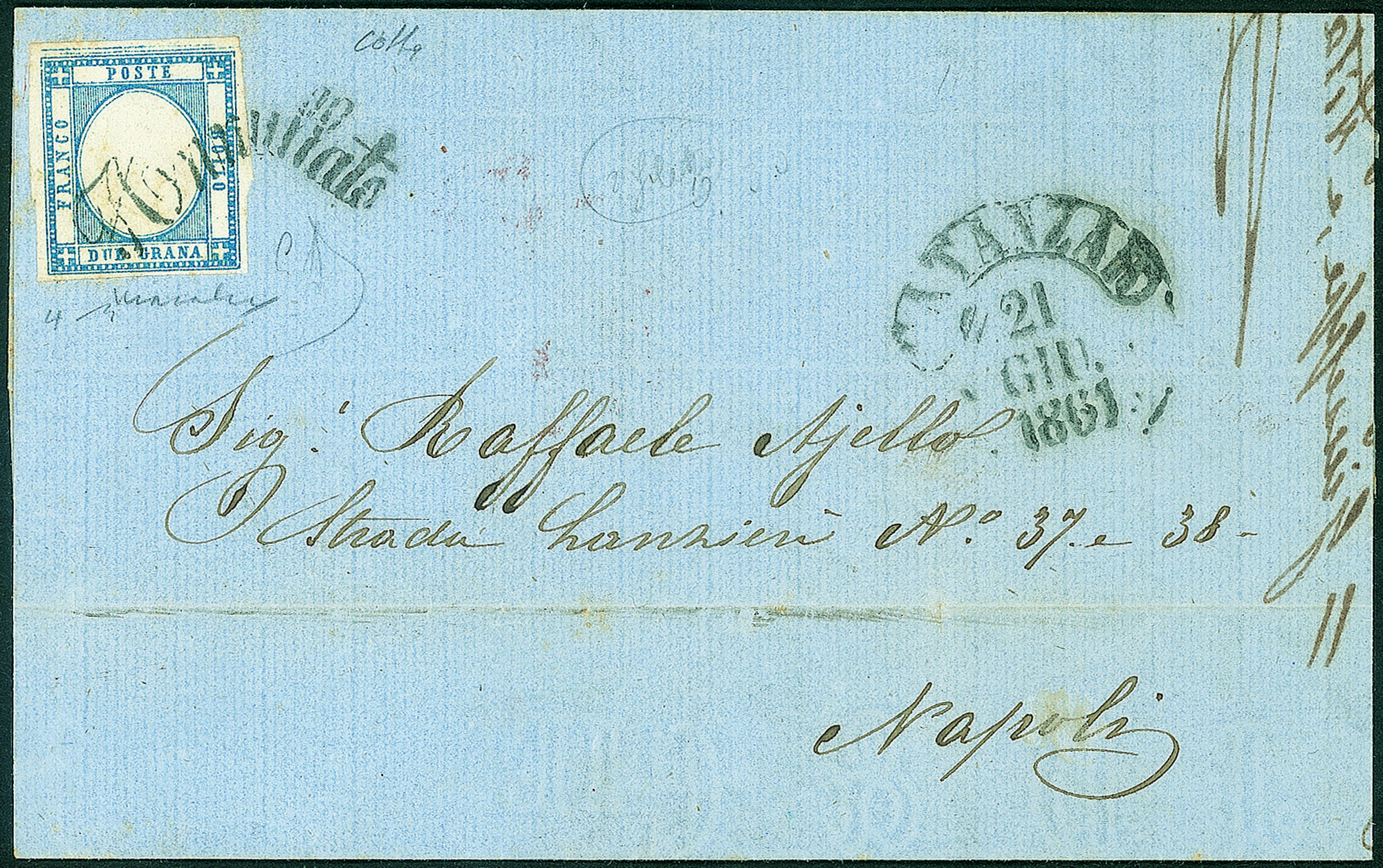 Antichi Stati Italiani - Napoli - Lettera affrancata con 2 grana azzurro chiaro
