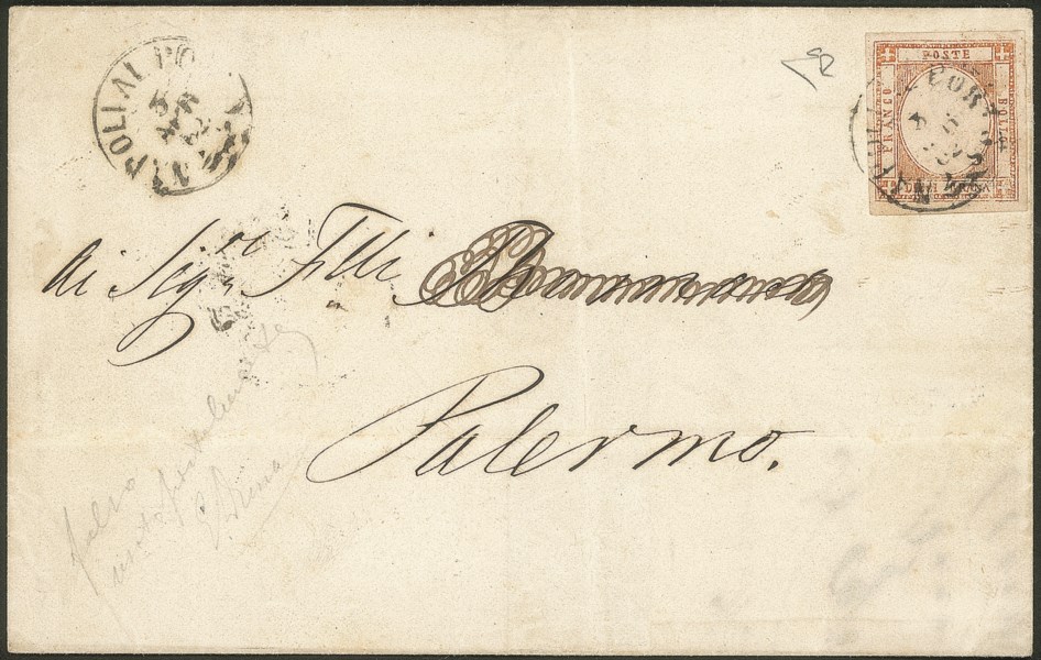 Antichi Stati Italiani - Napoli - Falso per posta del 10 grana II tipo effige tipo C colore arancio (F8 cat.7000)