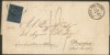 Per Pesaro e affrancata con c.40 azzurro, erroneamente instradata con annulli di transito di PIEVE DEL CAIRO 13 MAR.56 sul fronte e al verso i bolli di Alessandria, Ambulante Torino-Genova e Genova del giorno successivo, tassa in arrivo nello Stato Pontificio per 13 baiocchi, bollo di arrivo del 18 marzo, cert. G. Colla