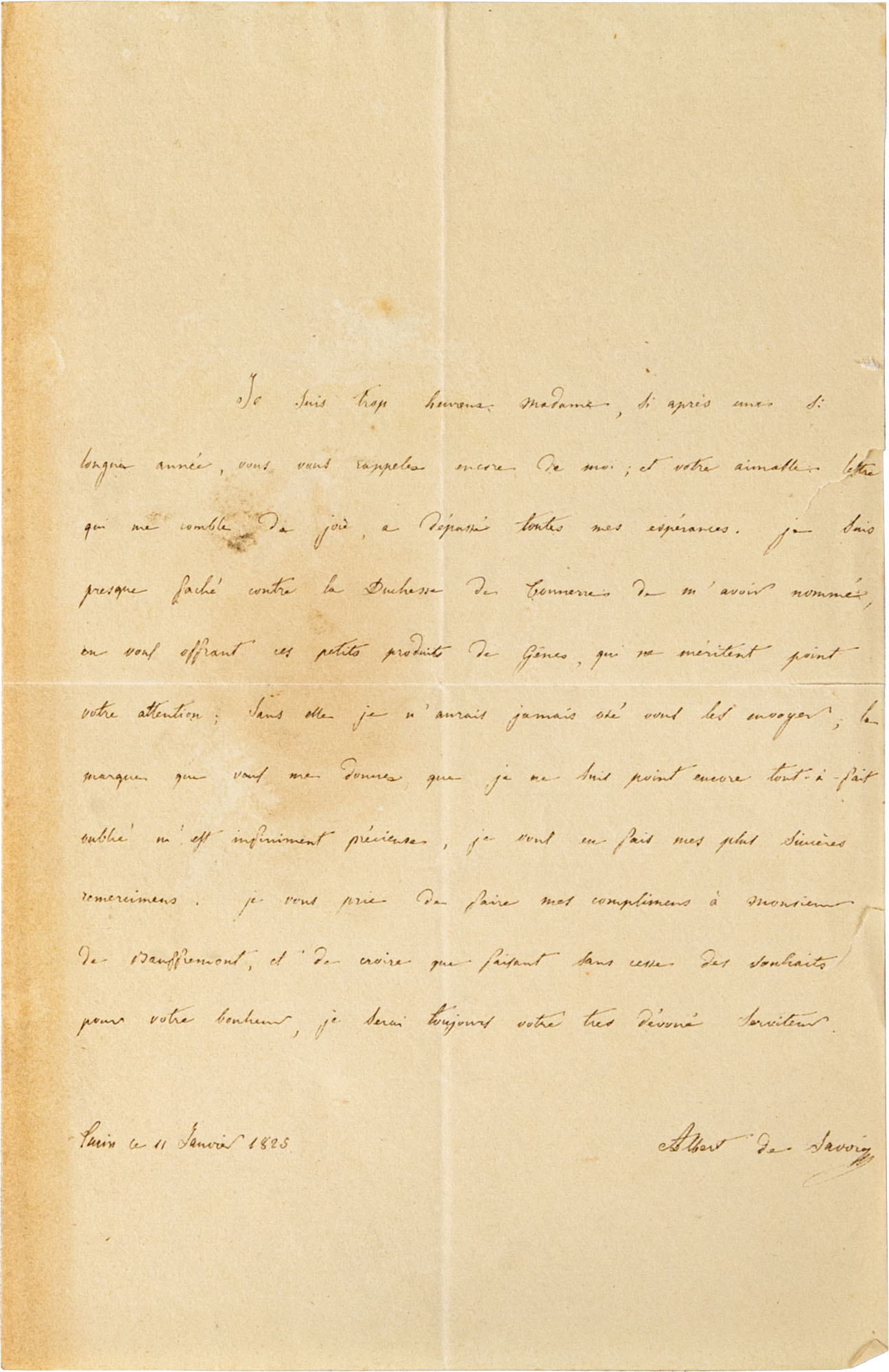 Carlo Alberto di Savoia - Lettera indirizzata alla principessa di Beauffremont