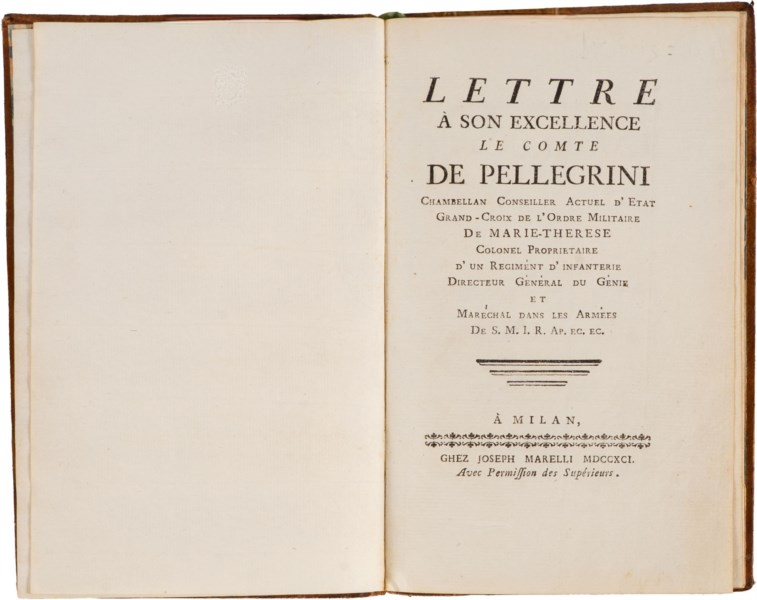 Lettre à son excellence le comte De Pellegrini, Chambellan Conseiller Colonel proprietaire d'un regiment d'infanterie, Directeur Generale du Genie