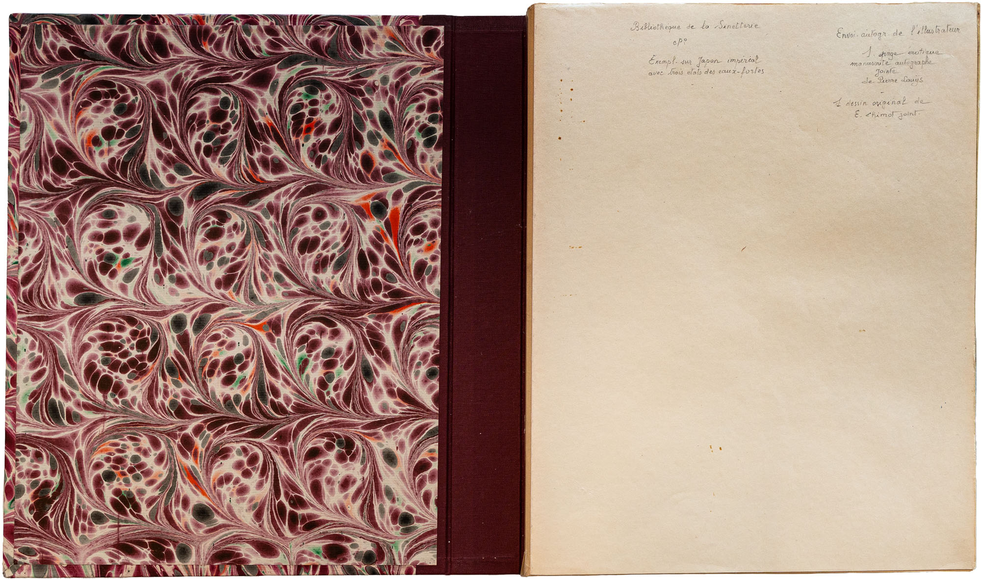 Magnifica edizione in tiratura complessiva di 230 esemplari numerati Il nostro, n. 48, fa parte della tiratura di 50 sur papier Japon imperial, arricchito da un bellissimo disegno a colori originale, firmato da Chimot