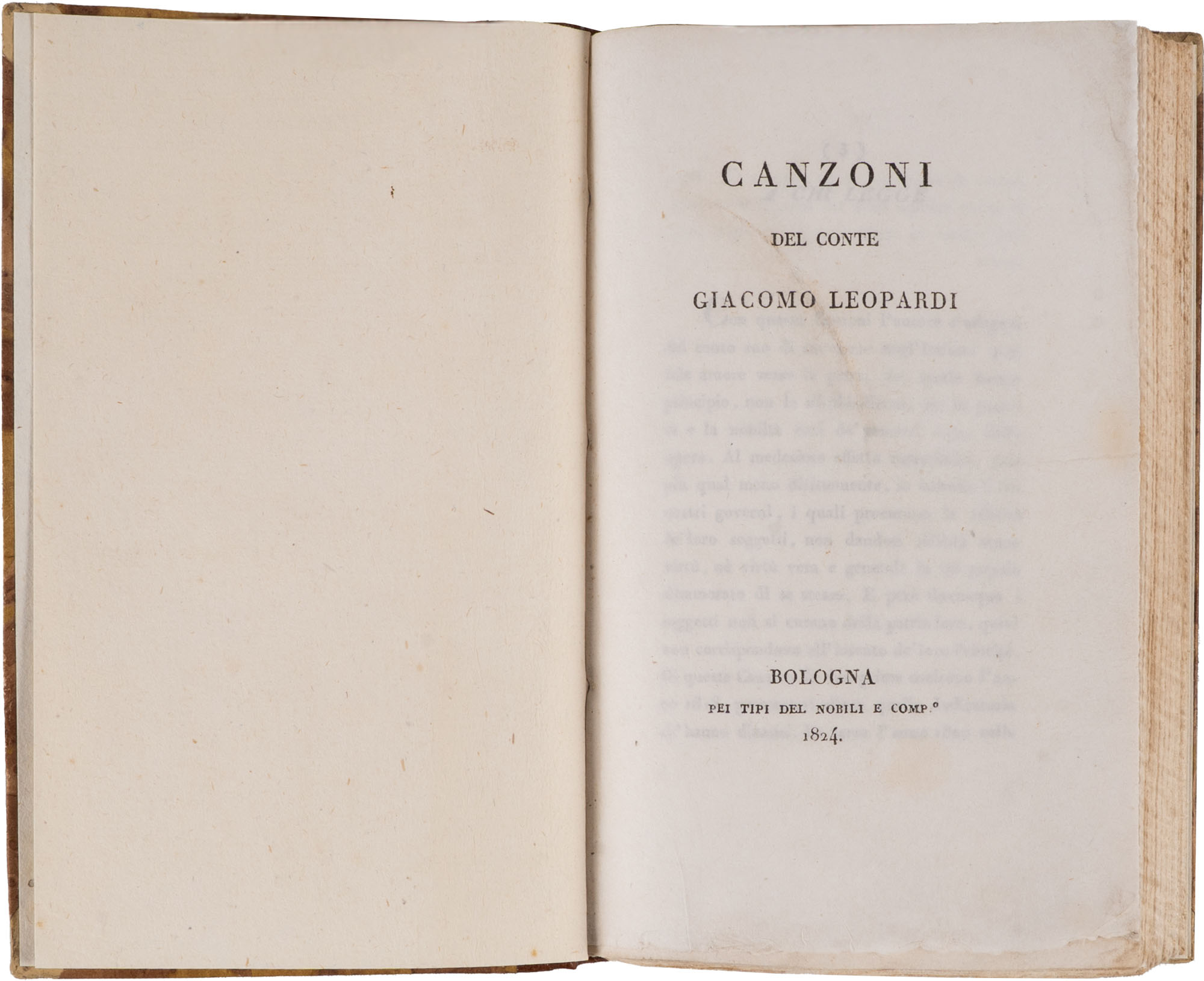 Prima edizione delle prime due raccolte di poesia del conte Giacomo Leopardi, stampate a Bologna