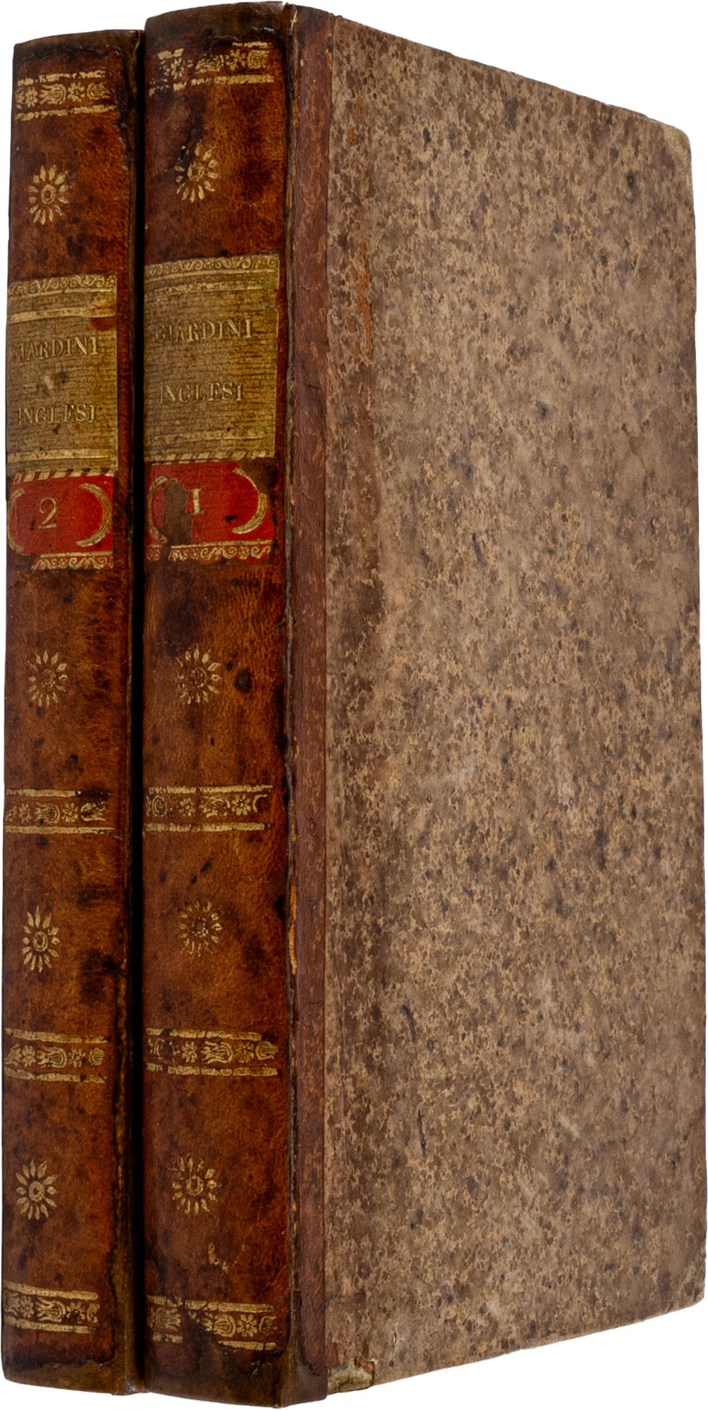 2 volumi, legatura coeva in mezza pelle con angoli in pergamena, titolo (in tassello) e fregi oro al dorso, tagli a spruzzo rossi