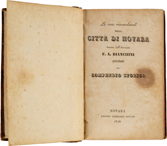 Bianchini F. A. - Le cose rimarchevoli della città di Novara descritte dall'avvocato F. A. Bianchini precedute da compendio storico