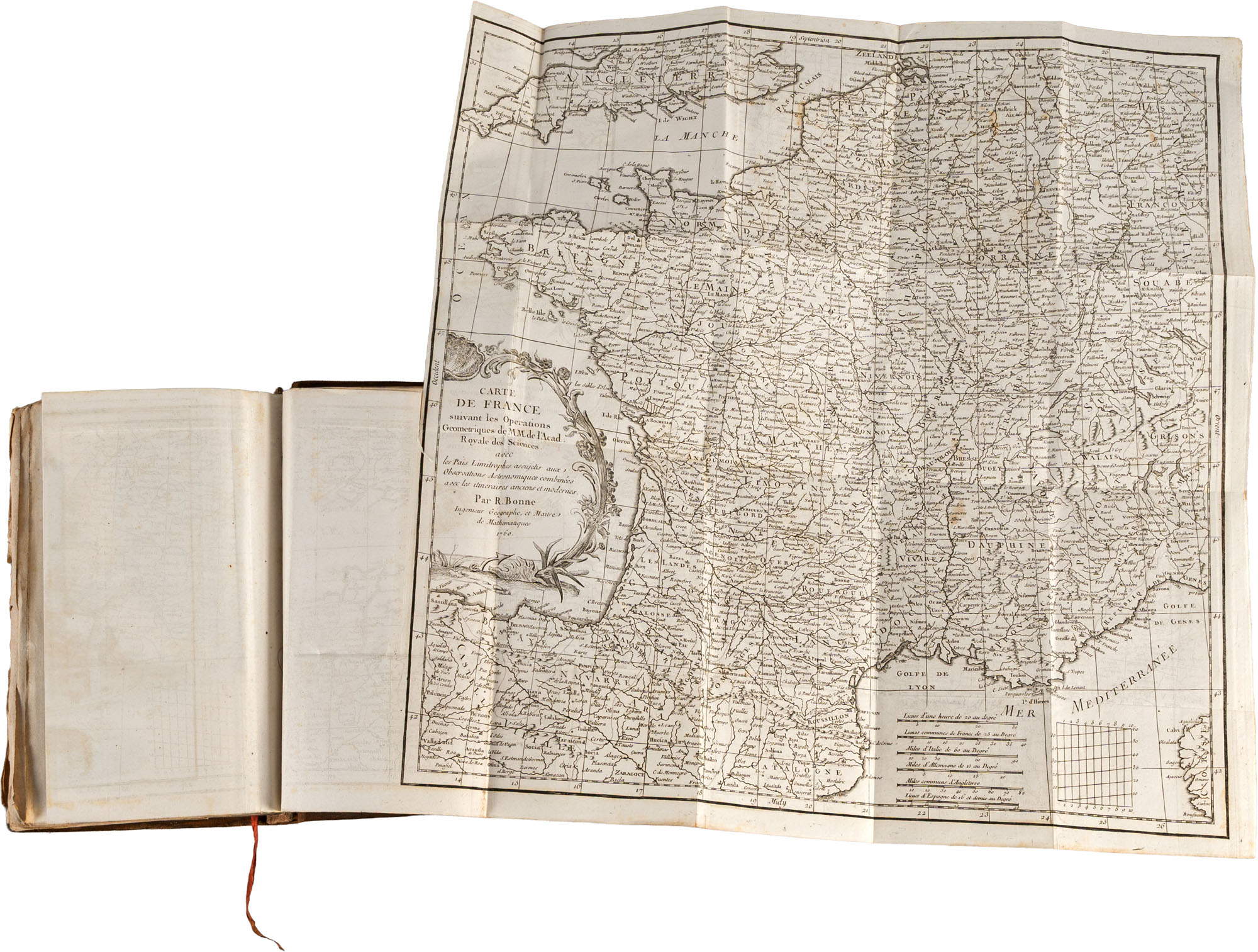 Antiporta figurata incisa su rame, 38 tavv. calcografiche ripiegate in fine incise da De la Gardette, Meunier, ecc., e una grande bella carta della Francia ripiegata più volte
