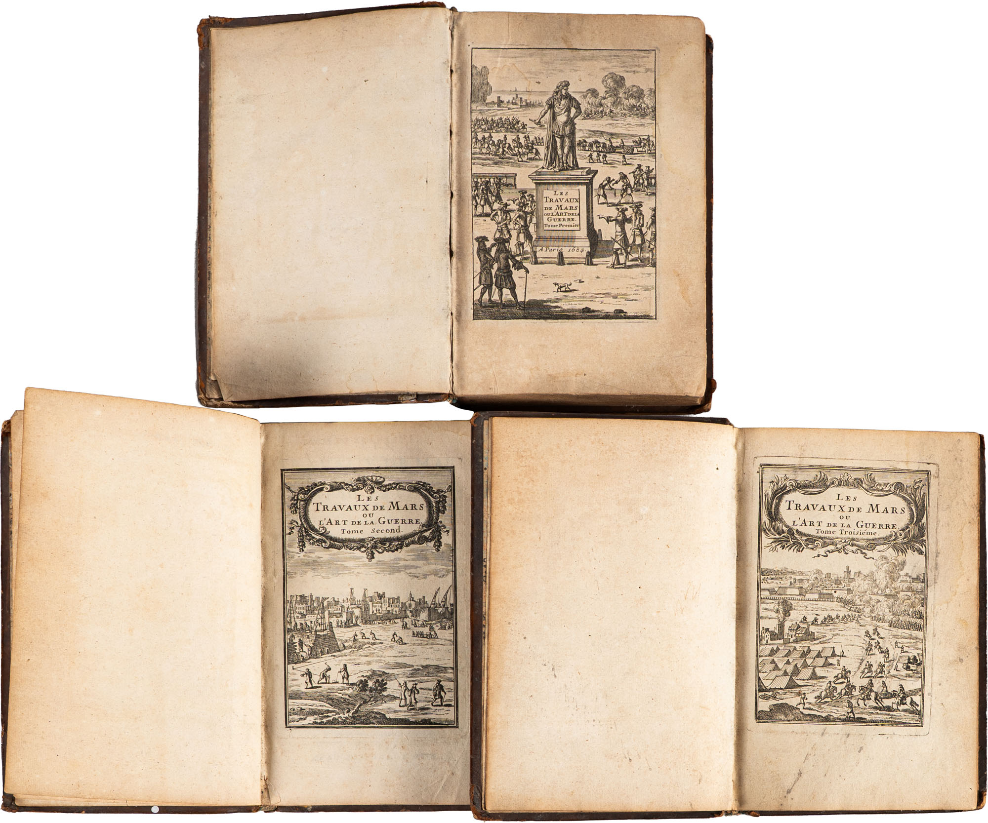 Allain Manesson Mallet - Les traveaux de Mars, ou l'art de la guerre divise' en trois parties... lettera dedicatoria al re