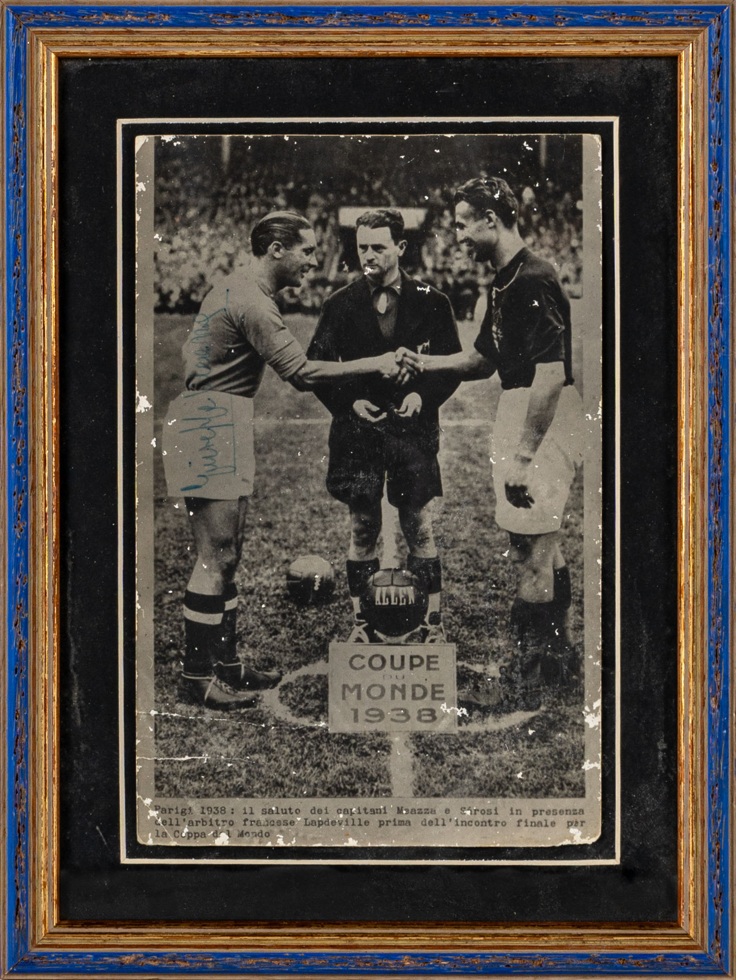 La fotografia rappresenta un importante cimelio della finale della Coppa Rimet di quell'anno, vinta per la seconda volta consecutiva dalla nazionale azzurra. Il commissario tecnico era all'epoca Vittorio Pozzo e Meazza, che già aveva vinto nel 1934, era il giocatore più famoso di quella squadra