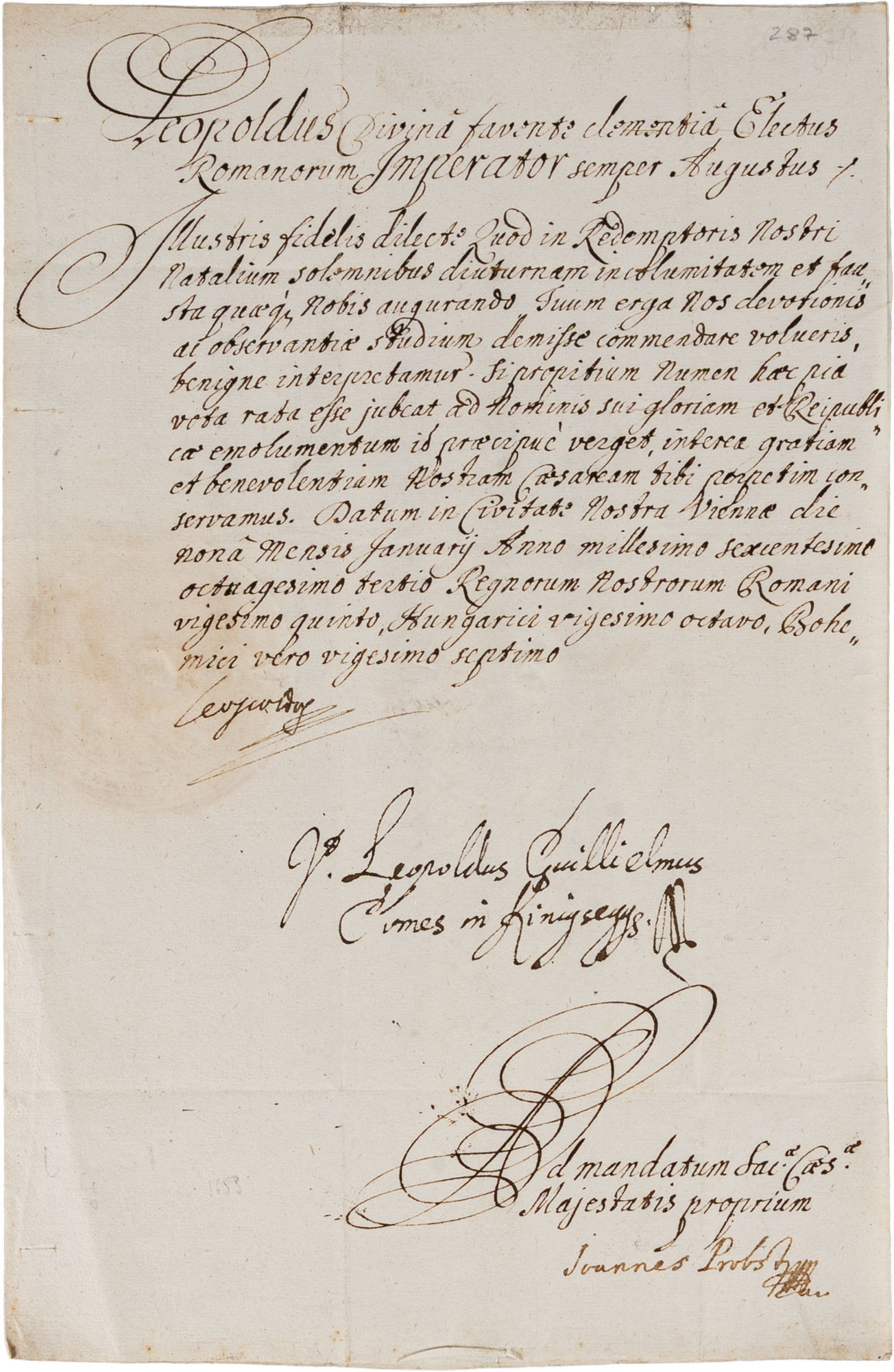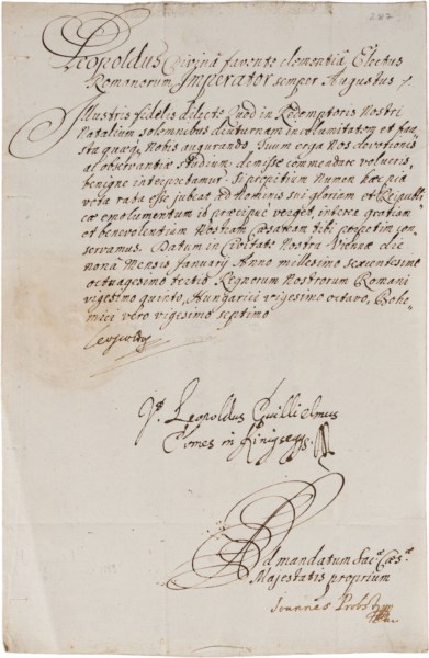 Leopoldo d'Asburgo, imperatore - Missiva scritta da altra mano e firmata di pugno dall'imperatore
