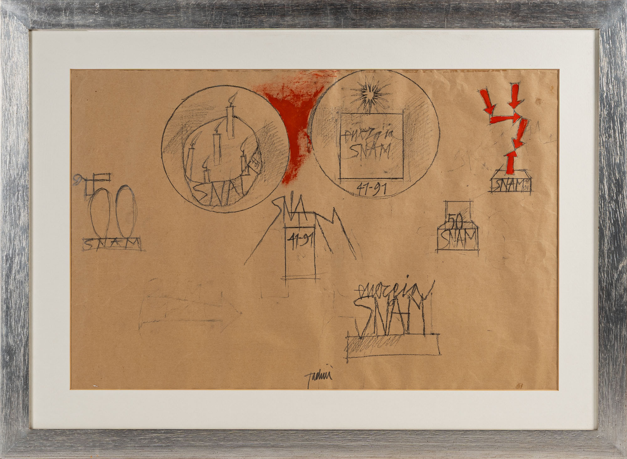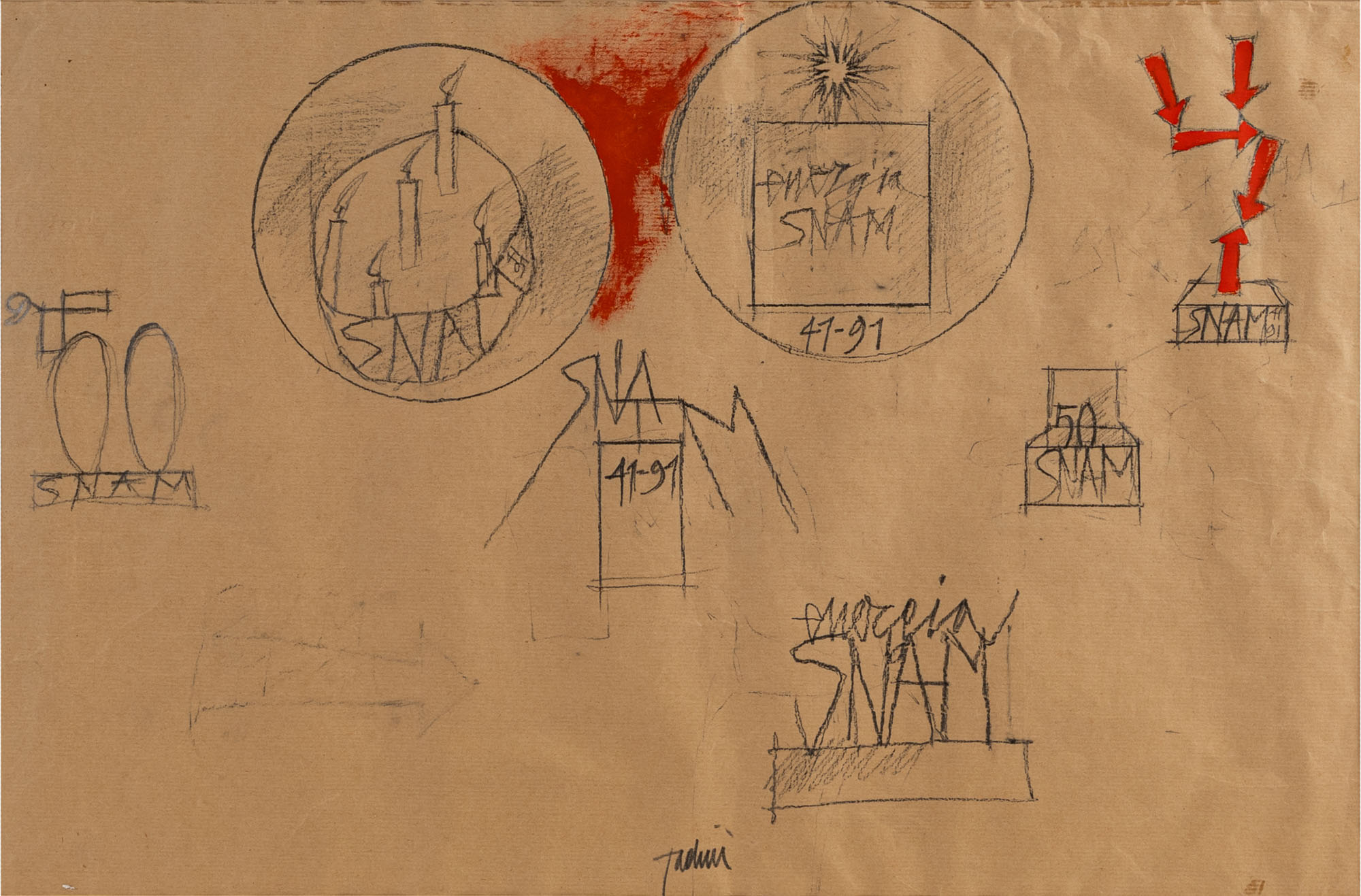 Tecnica mista su carta, bozzetto realizzato per il cinquantesimo anniversario dell'azienda Snam, Milano