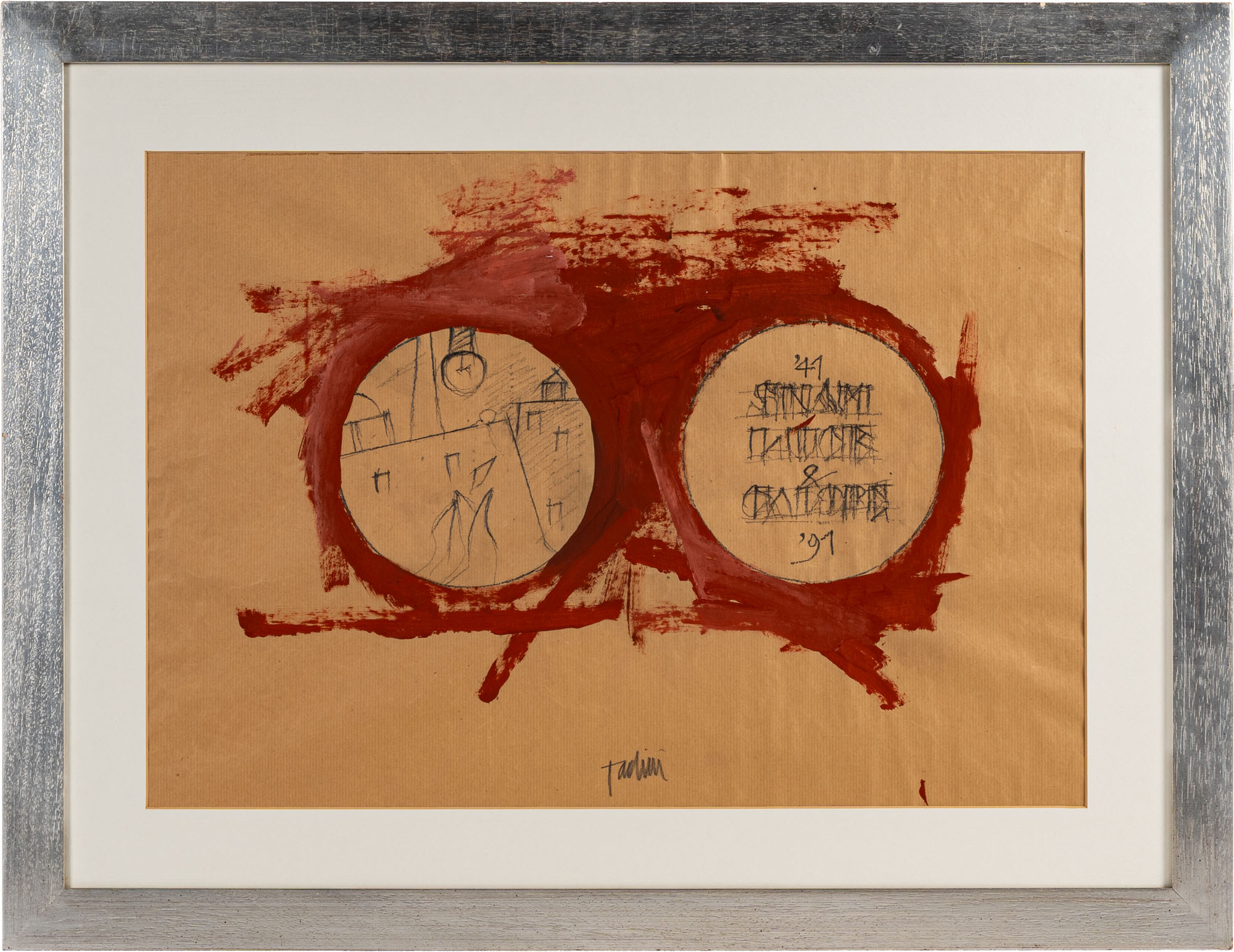 Tecnica mista su carta, bozzetto realizzato per il cinquantesimo anniversario dell'azienda Snam, Milano