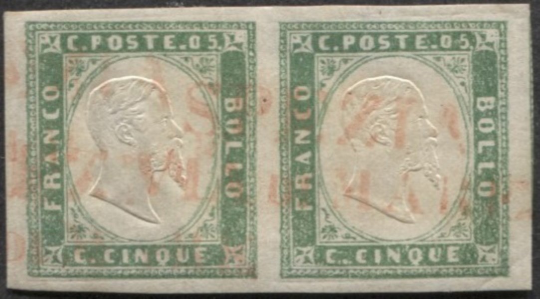 Coppia 5 cent verde pisello annullata con SD rosso Via di Mare - buoni margini - raro insieme - AD + Bolaffi - (13c)