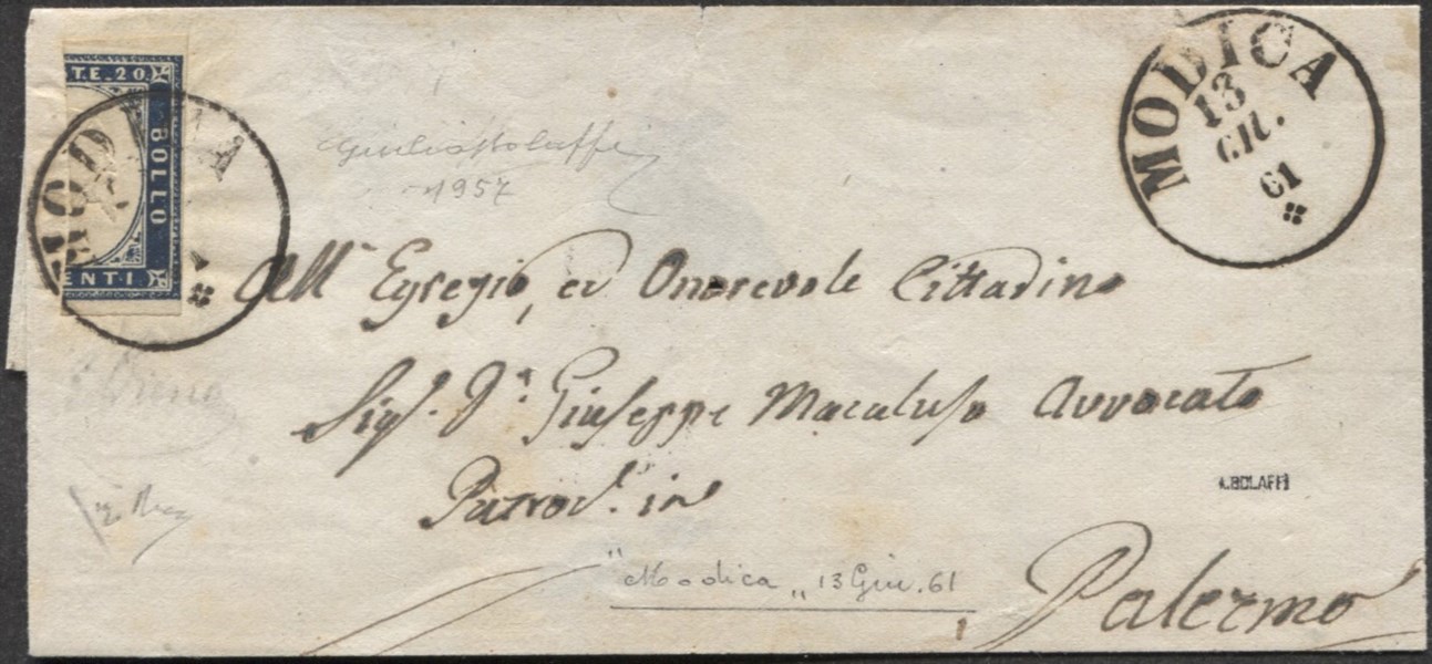 Lettera di piccolo formato da Modica 13.6.61 per Palermo affrancata in tariffa per interno con frazionamento verticale del 10 cent - ben marginato - rarità - Em.D + cert. Bolaffi + cert. ED - (15Da)