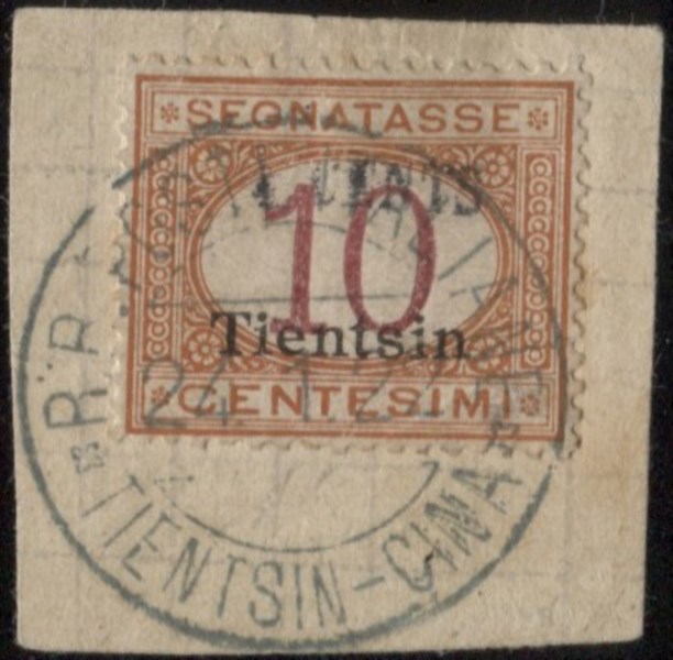 Frammento recante un 4 su 10 cent Tasse con soprastampa a mano - bene dentellato - 2 soli noti - GRANDE RARITA' - cert. AD + cert. ED + cert. Sorani + cert. Bolaffi - (T5a)