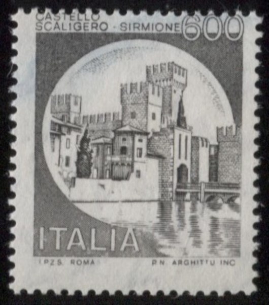 1980 Repubblica - 600 lire Castello Scaligero di Sirmione privo della stampa del verde - cert. Diena - (Bolaffi 1628 B)