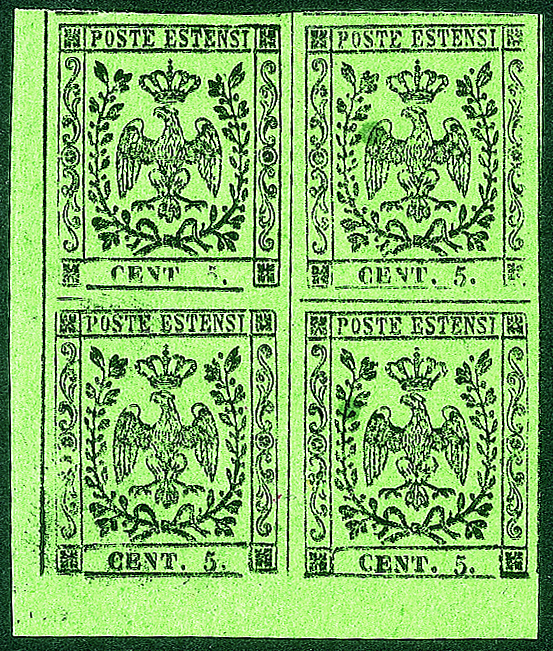 Antichi Stati Italiani - Modena - 1855 - Quartina del 5 cent (8a cat.21000)