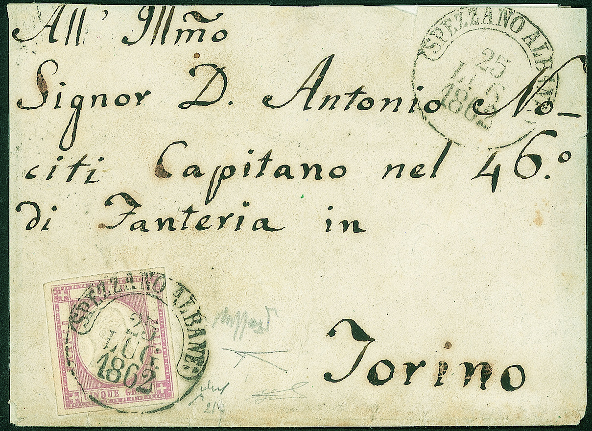 Diretta ad un Capitano nel 46° di fanteria da Spezzano Albanese 25 LUG.1862 per Torino - non comune