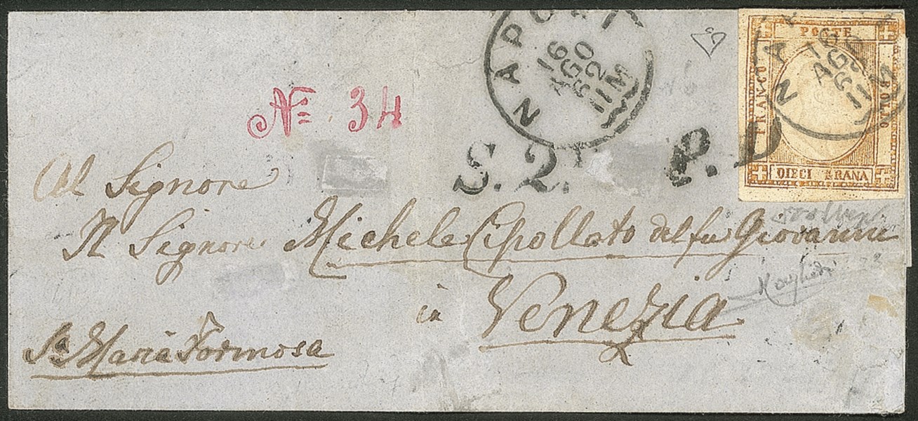 Perfetto - su lettera da Napoli 16 AGO 62 a Venezia - destinazione estremamente rara - ex collezione Rothschild