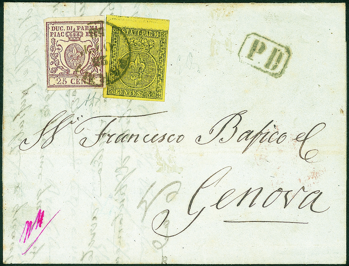 Antichi Stati Italiani - Parma - Lettera con affrancatura mista (1 + 10)