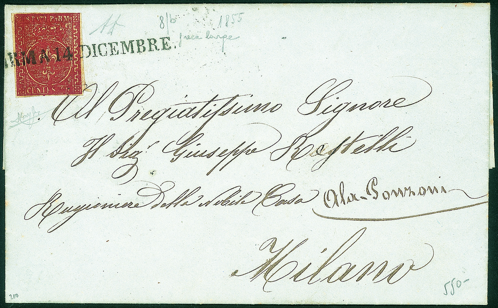 Da Parma 14 Dicembre del 1855 per Milano - cert. Raybaudi