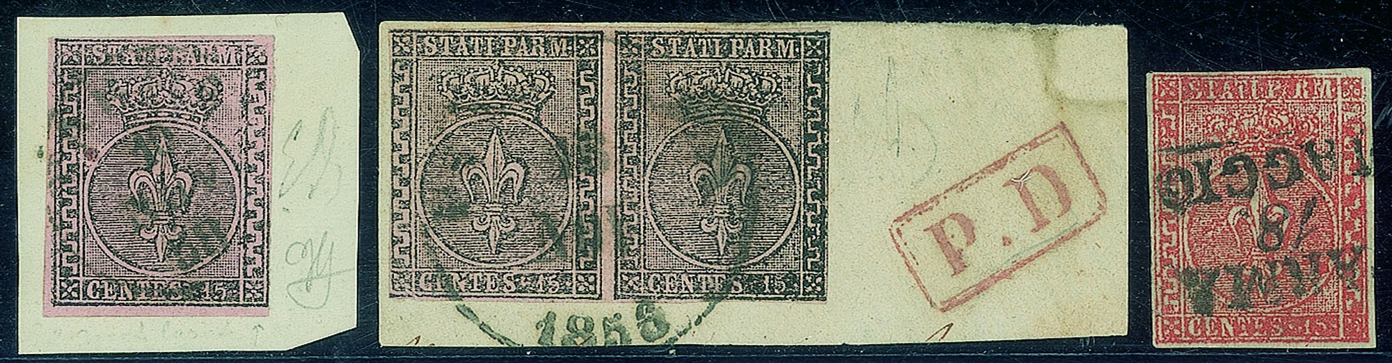 Antichi Stati Italiani - Parma - 1852/1855 - Lotto di tre esemplari