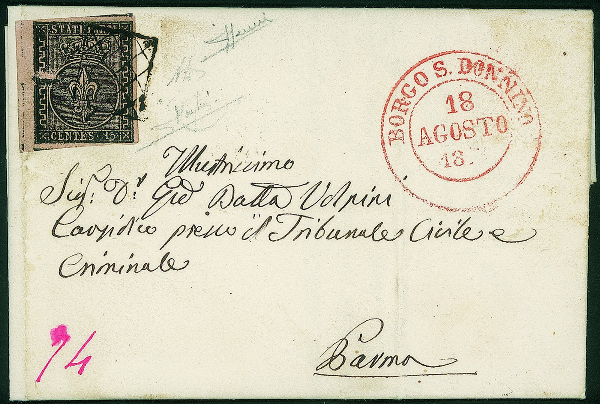 Antichi Stati Italiani - Parma - Lettera con 15 cent rosa (3)