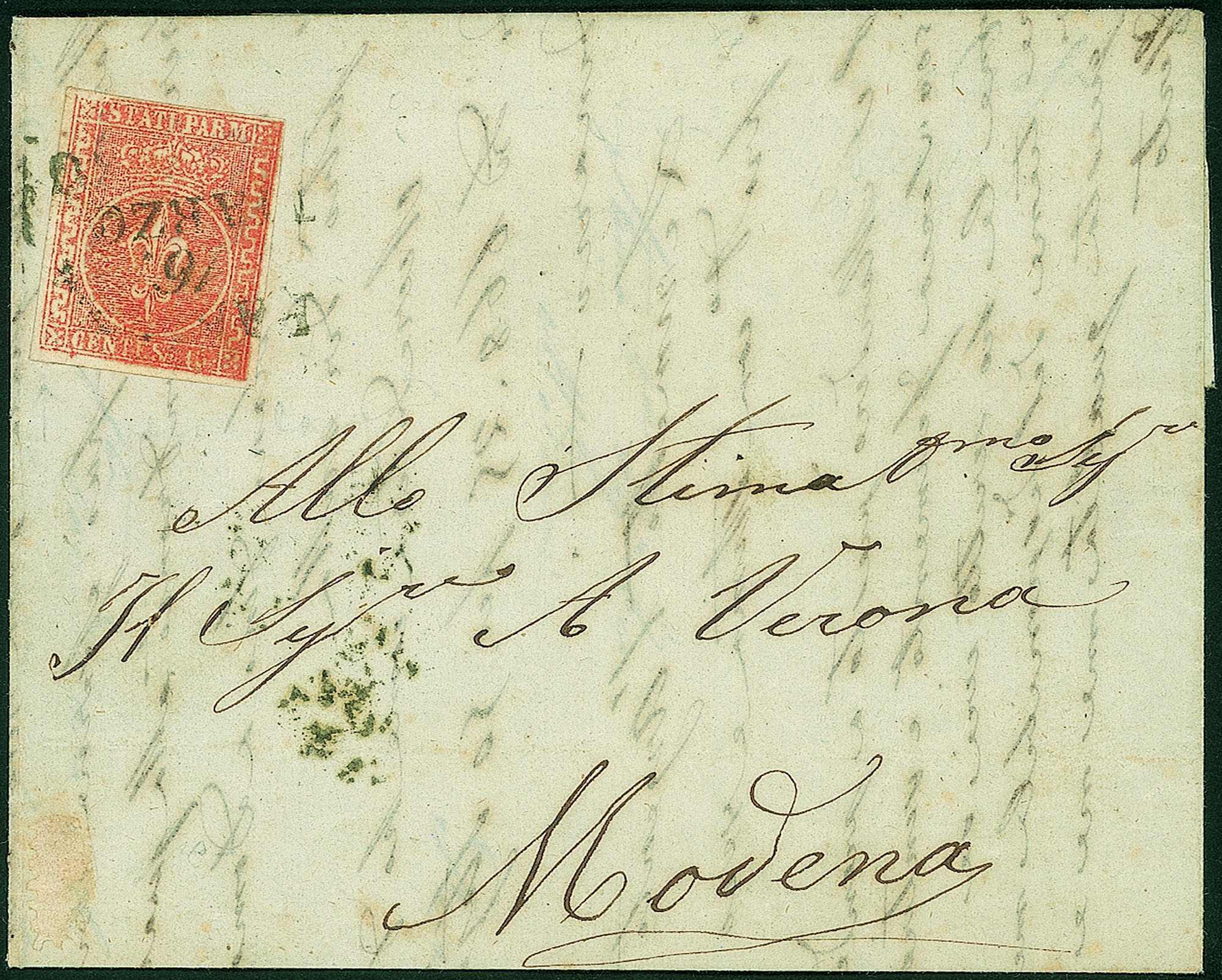 Antichi Stati Italiani - Parma - Lettera da Parma a Modena con 15 cent vermiglio (7c)