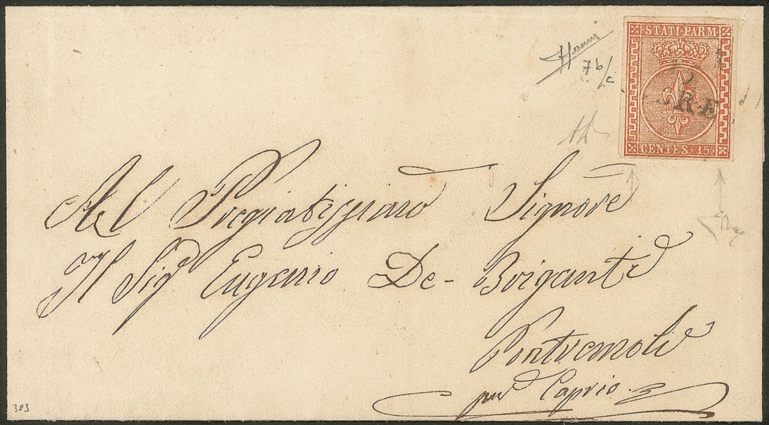 Antichi Stati Italiani - Parma - Lettera da Parma a Modena con 15 cent vermiglio (7c)