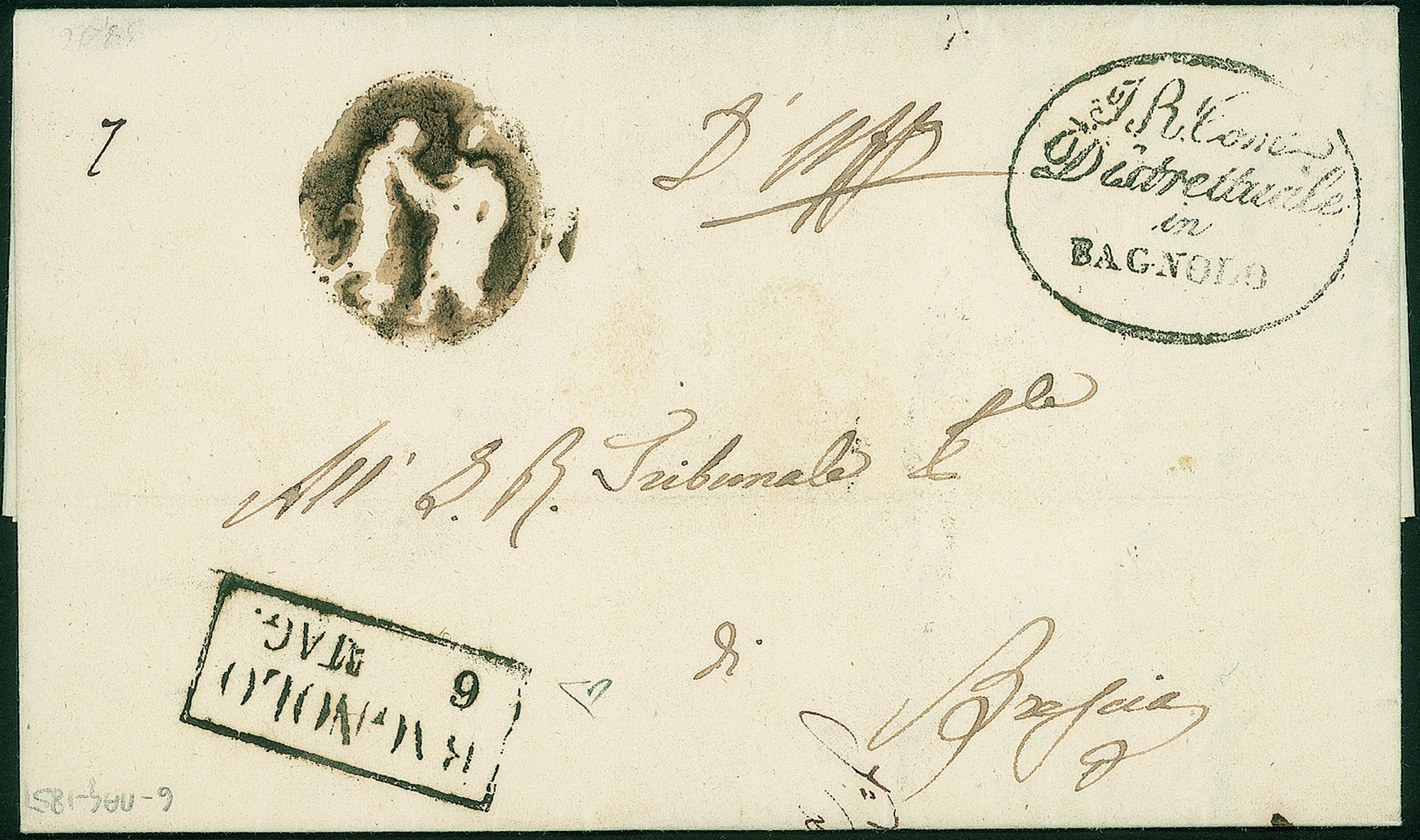 Lettera in franchigia del 6.5.1851 per Brescia - firma E. Diena