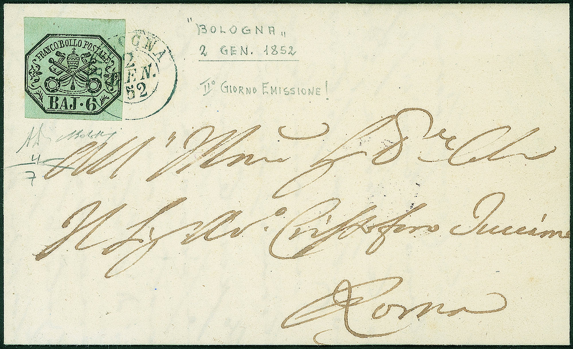 Antichi Stati Italiani - Stato pontificio - Lettera da Bologna a Roma 2 GENNAIO 1852