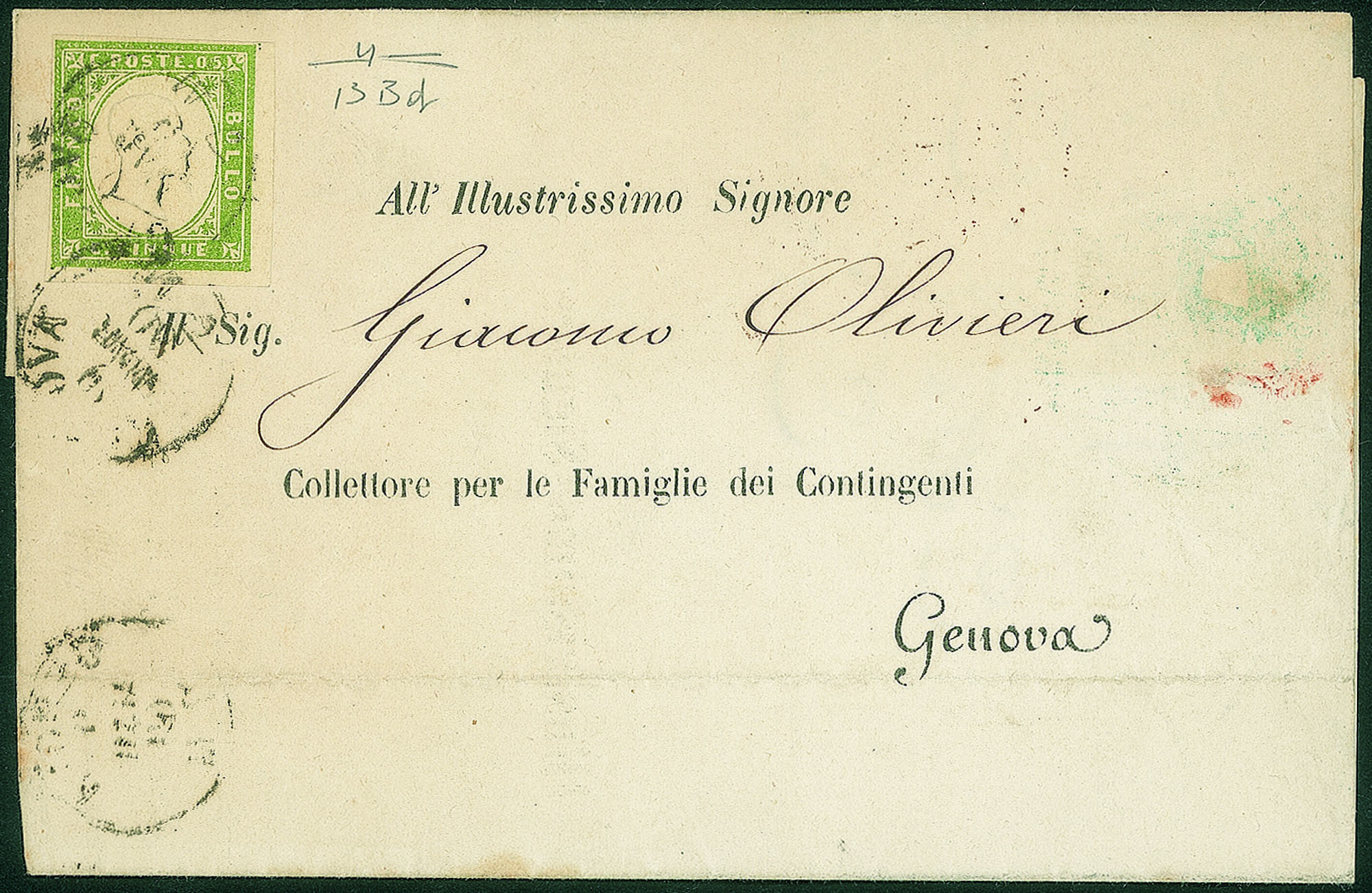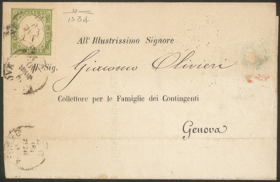 Antichi Stati Italiani - Sardegna - Circolare da Genova per città del 9 marzo 1860