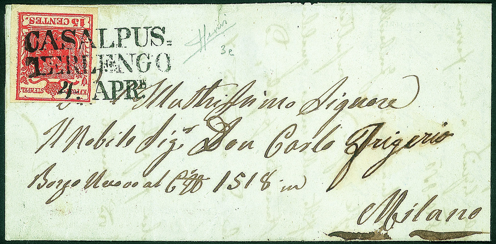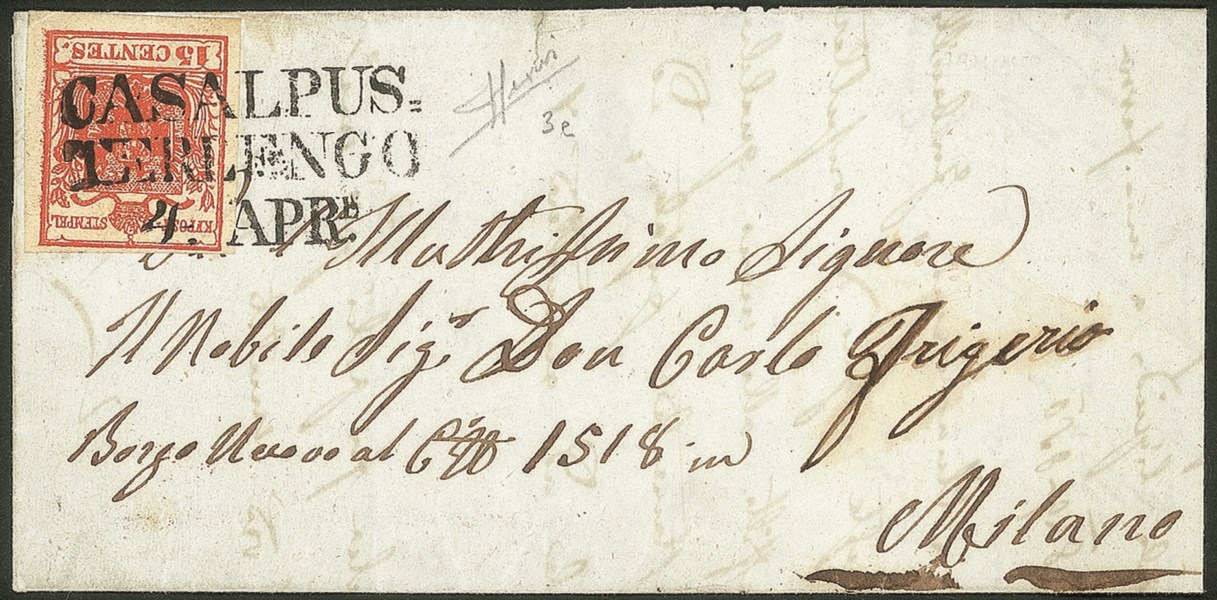 Antichi Stati Italiani - Lombardo Veneto - Annullamenti - Casalpus.terlengo (stampatello diritto - P.ti 5)