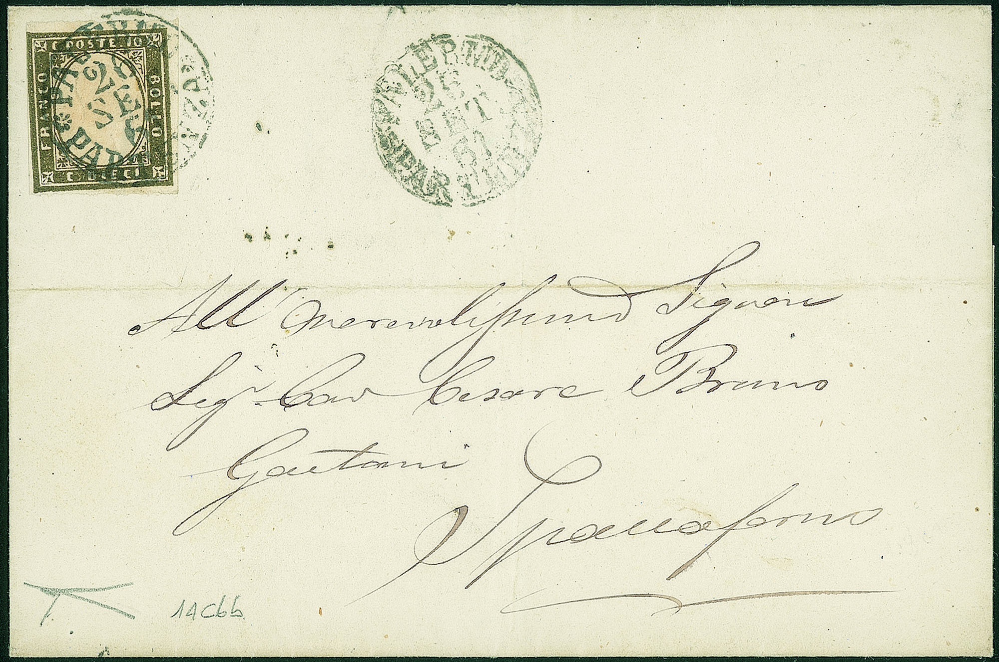 Antichi Stati Italiani - Sardegna - Fresca lettera da Palermo 26.9.61 per l'interno