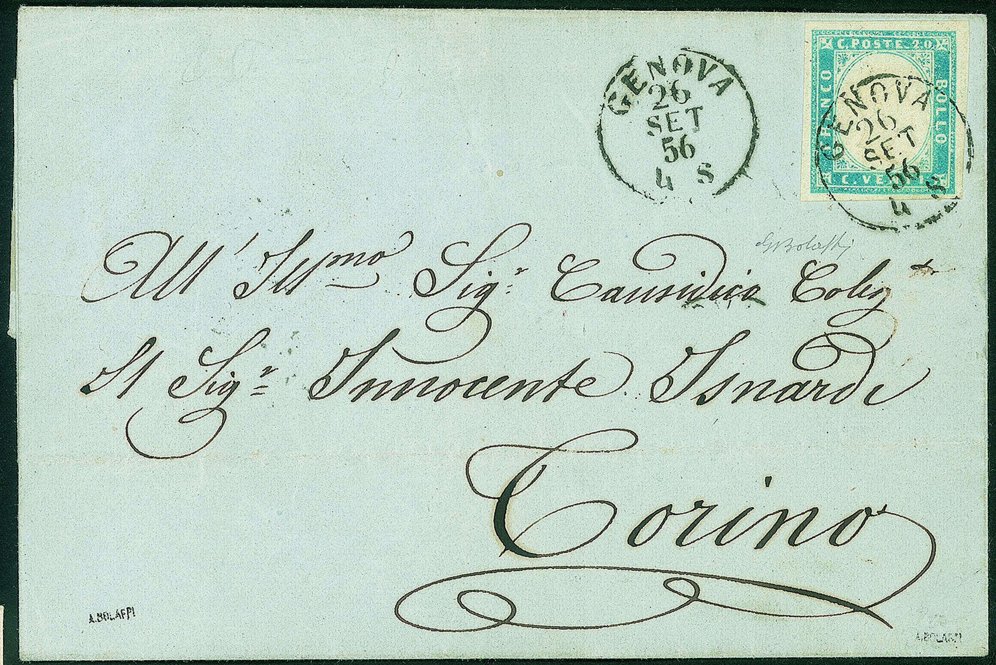 Su lettera da Genova a Torino del 26.9.56 - molto bello - ex coll. Provera - cert. Bolaffi