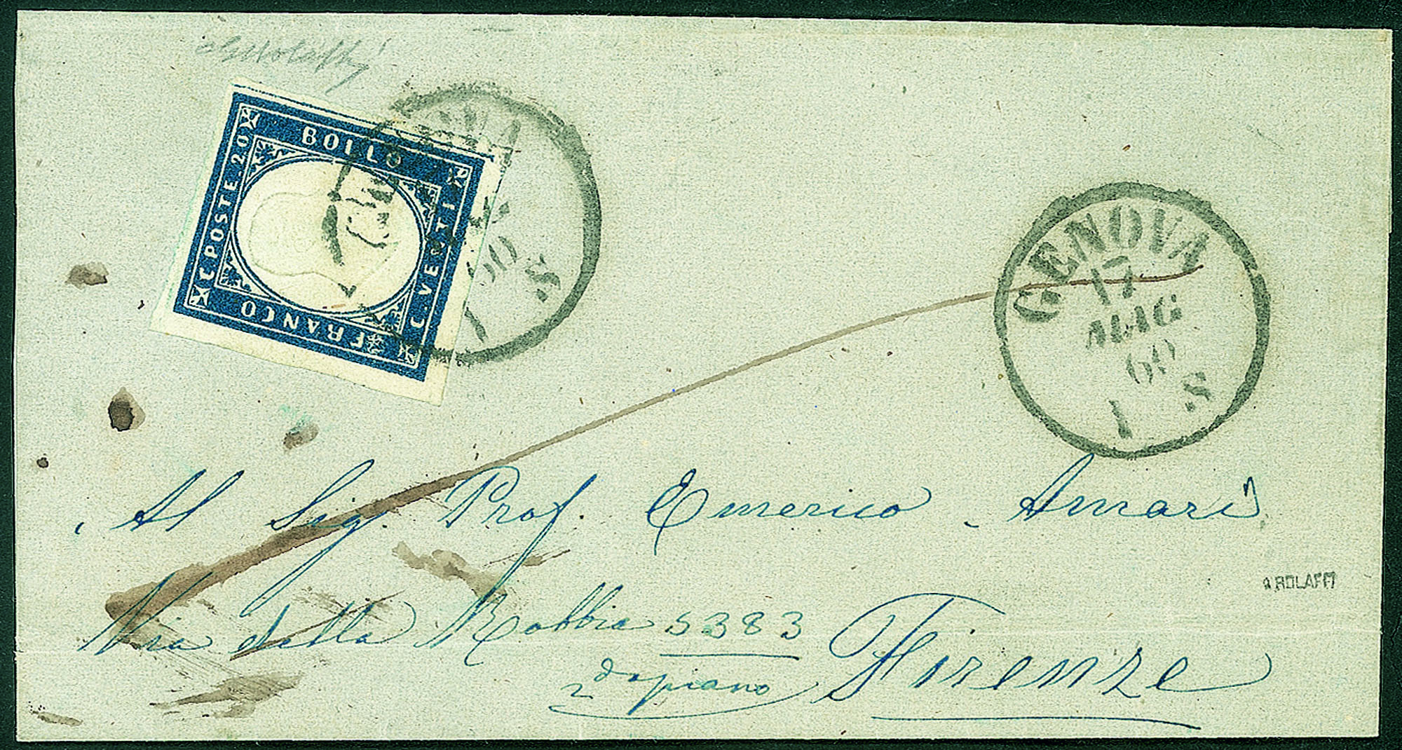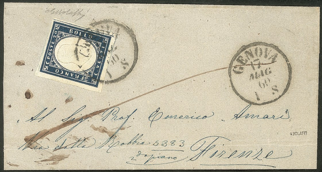 Con filetto di riquadro a destra su letterina da Genova a Firenze del 17.5.60 - ex coll. Provera - Bolaffi