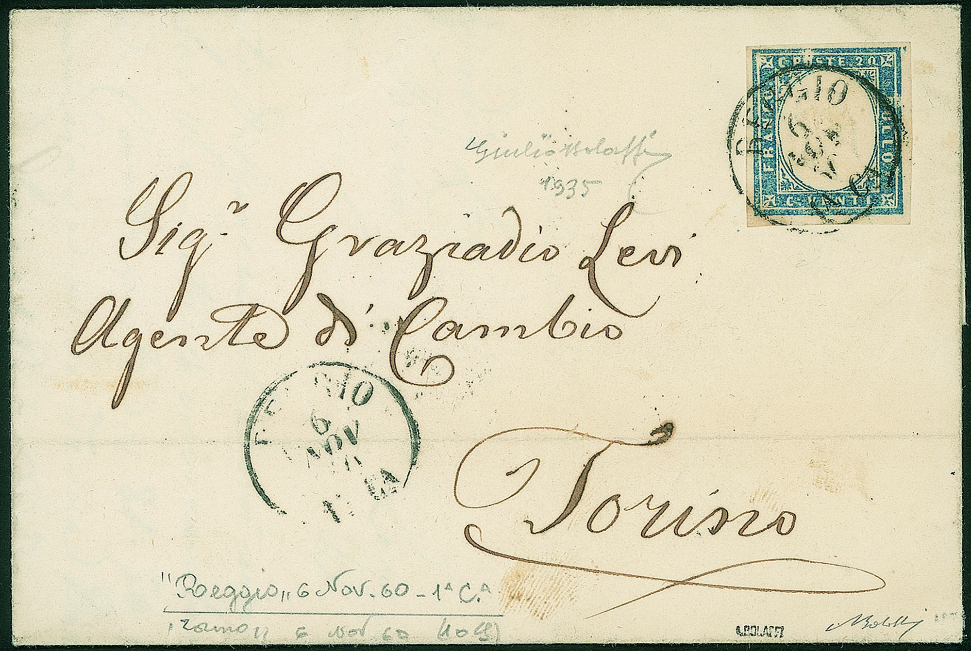 Con stampa mancante - lettera da Reggio a Torino del 6.11.60 - molto bella - Giulio Bolaffi