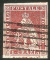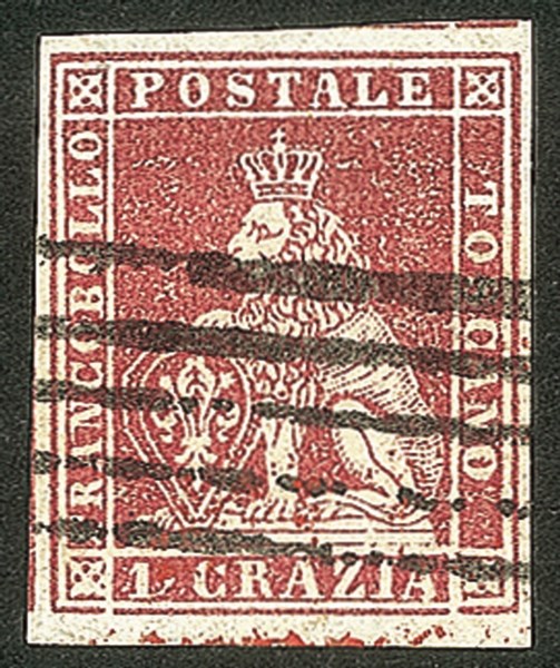 Antichi Stati Italiani - Toscana - Difetti di cliché - 1851 - 1 crazia carminio bruno su grigio (4e)