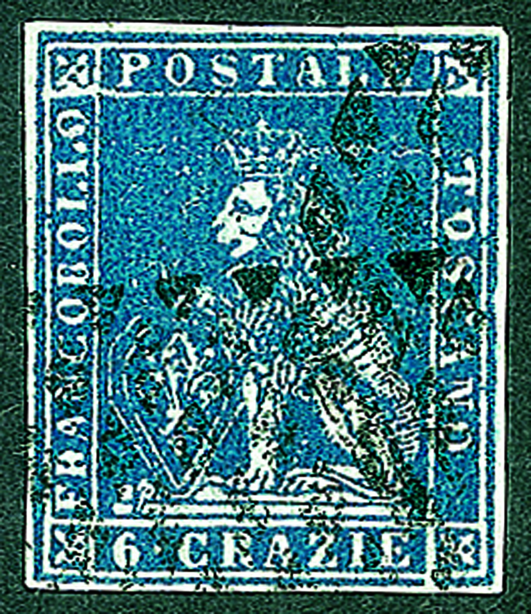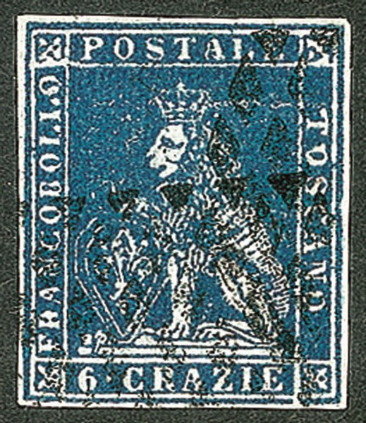 Con evidente difetto su R di Francobollo su T di Toscano e sull'ornato superiore sinistro - usato - molto bello