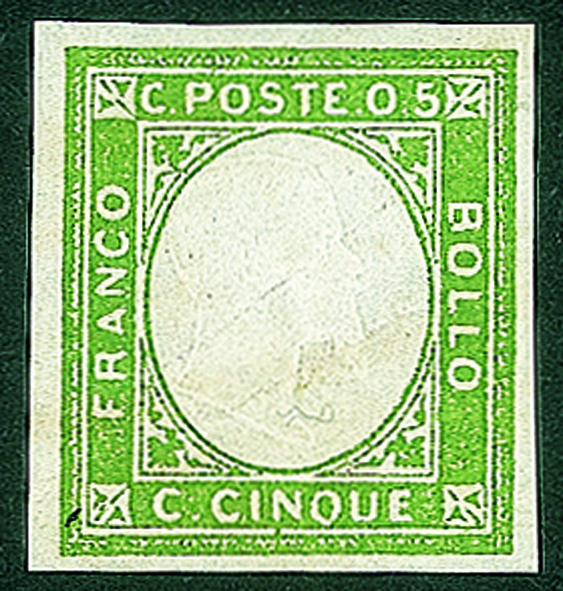 Regno - Vittorio Emanuele II - 1861 - Emissione per le Province Napoletane - Francobollo Sperimentale - 5 cent verde giallo (1S)